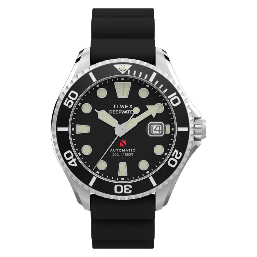 Timex® - Deepwater Meridian 200 Automatic 44mm HNBR Rubber Strap Watch