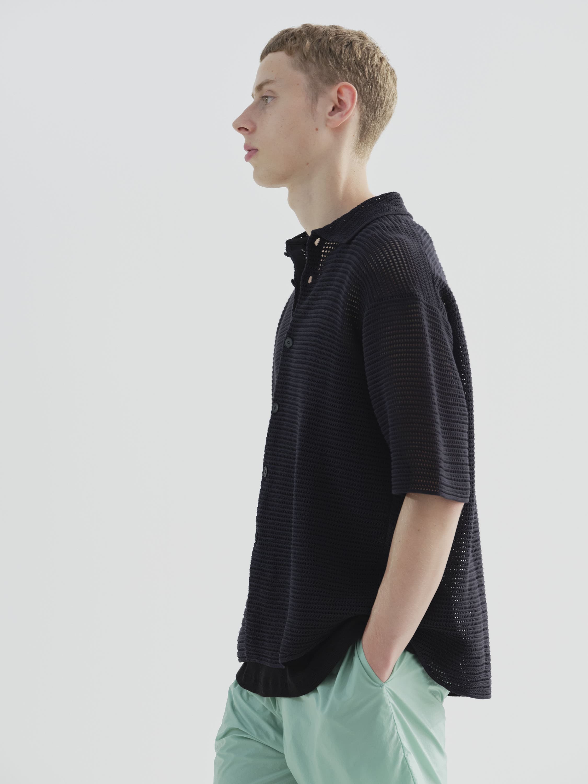AURALEE Cotton Mesh Knit Half Sleeved Shirt - KHAKI BROWN