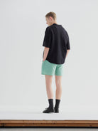 Mesh knit crafted from 100% cotton yarn processed to mimic linen using konjac processing. The yarn is knitted in a twisted pattern, resulting in a chunky texture reminiscent of crochet. While the knit is mesh, each individual strand of yarn is robust, giving the fabric a striking presence.