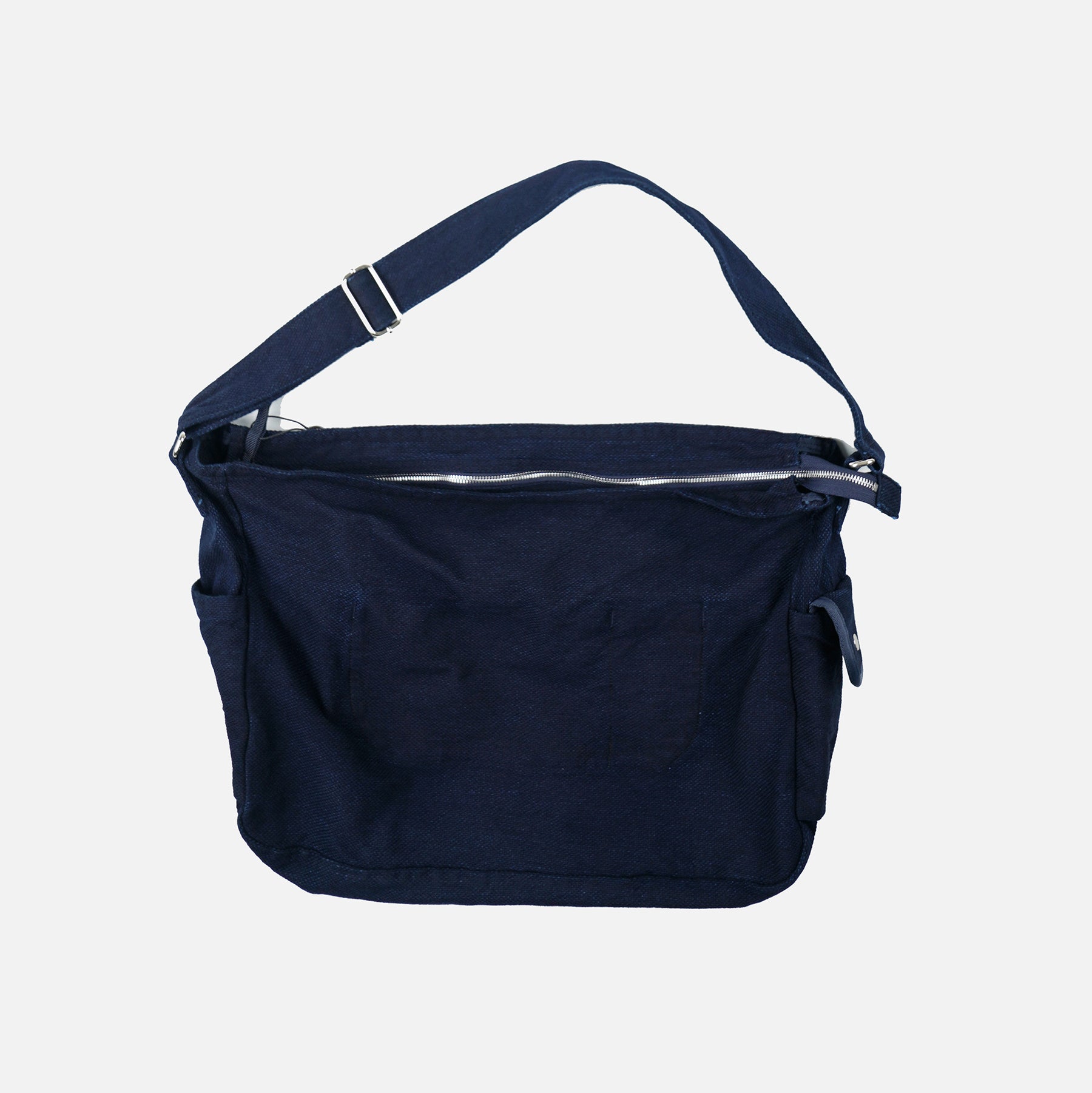 Crafted from substantial sashiko-weave denim, this shoulder bag marries refined aesthetics with purposeful construction. The textured fabric develops character with wear, while a secure zip closure and adjustable strap ensure reliable everyday functionality. Thoughtfully proportioned to accommodate a laptop and essentials, with strategically placed exterior pockets for seamless access. Its versatile design transitions effortlessly from casual layering to polished tailoring, making it an indispensable addition to any considered wardrobe.