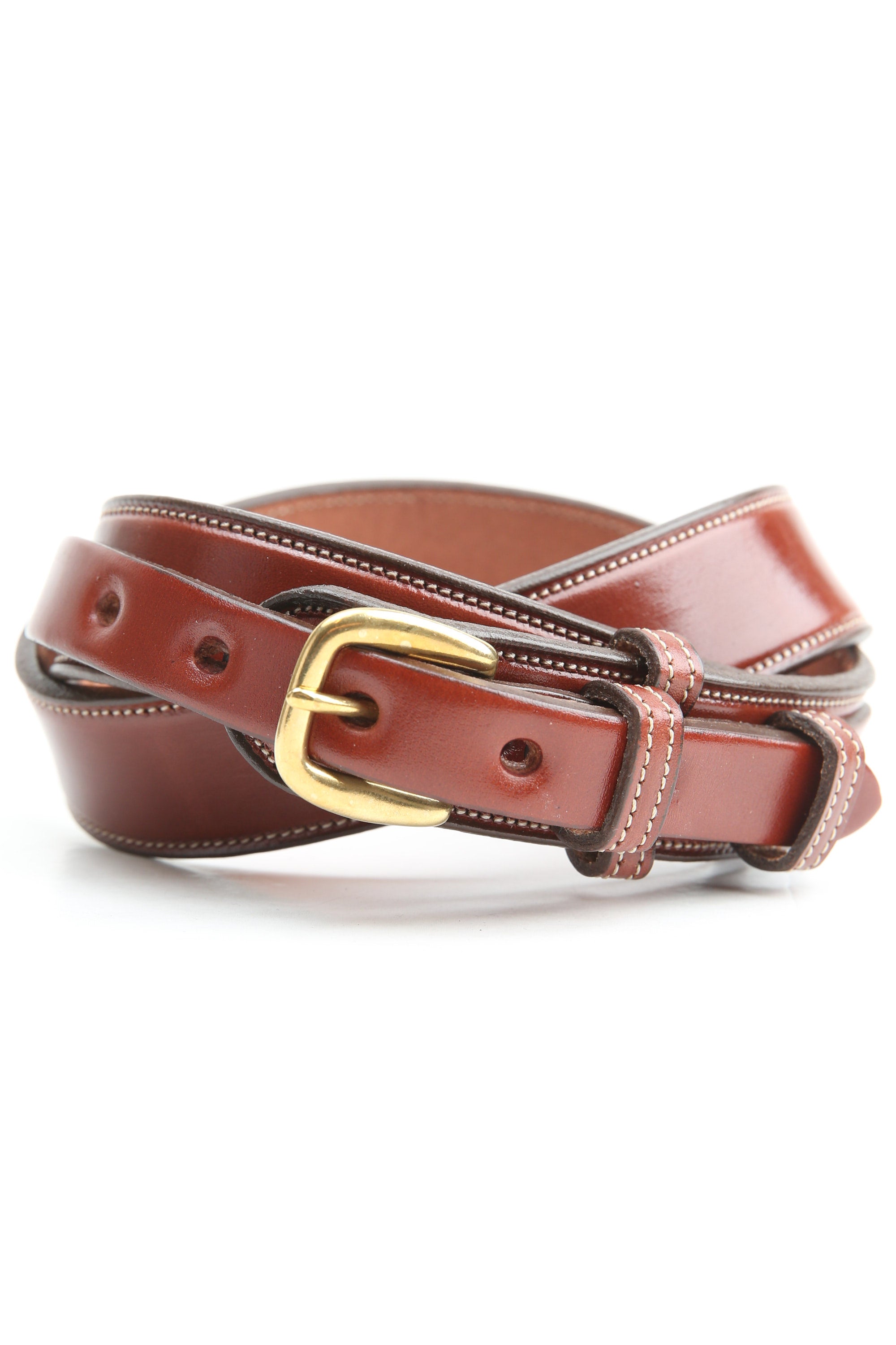 Crafted from heavy-weight English Bridle Leather, this 1 1/4" Tory Leather Ranger Belt in Oakbark is built to last and look better with age. Decorative leather tab overlays highlight the solid brass buckle, which snaps on and off for easy swapping. Made in America from the finest domestic leather, it’s the perfect playful finishing touch for your riding gear or everyday style. Pro tip: order your belt 2" larger than your waist for the best fit!