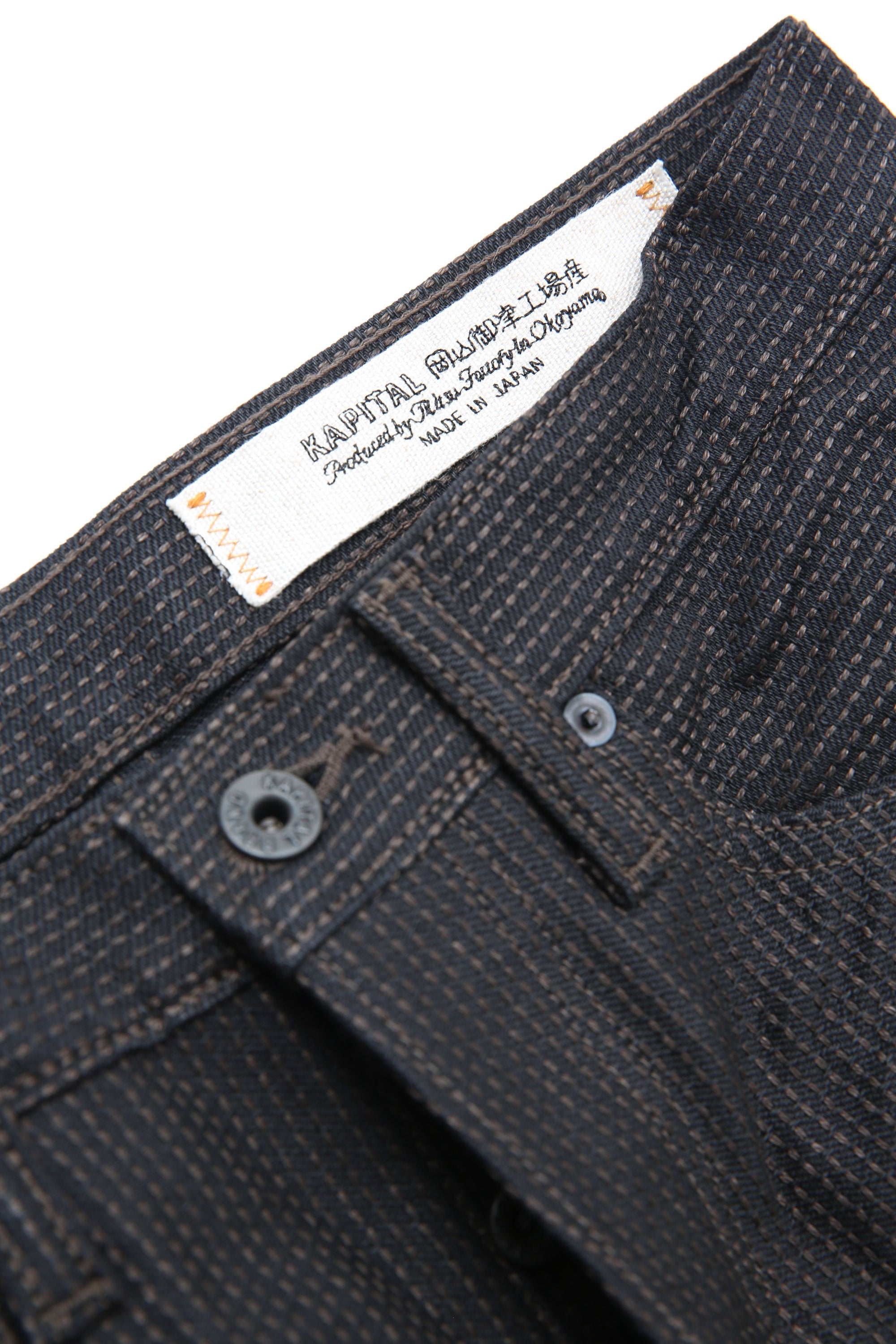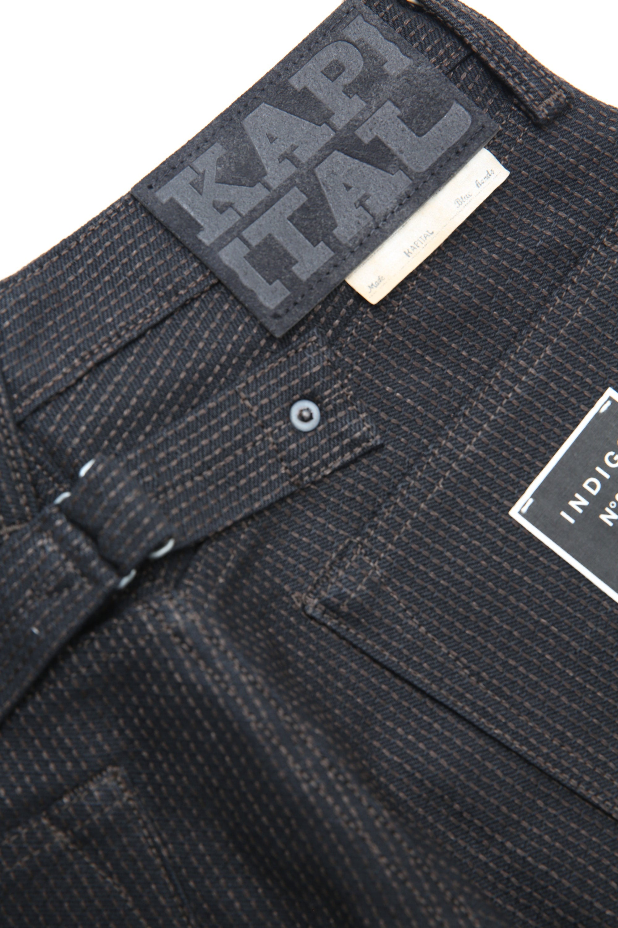 Indulge in the unique Mud dyed in Omami Oshima, a natural dyeing method practiced only in Amami Oshima. The Kapital Century Denim MONKEY CISCO - N0.9 (KAP-305) features intricate Sashiko detailing for a truly one-of-a-kind look. Add some flair to your wardrobe with this quirky piece!