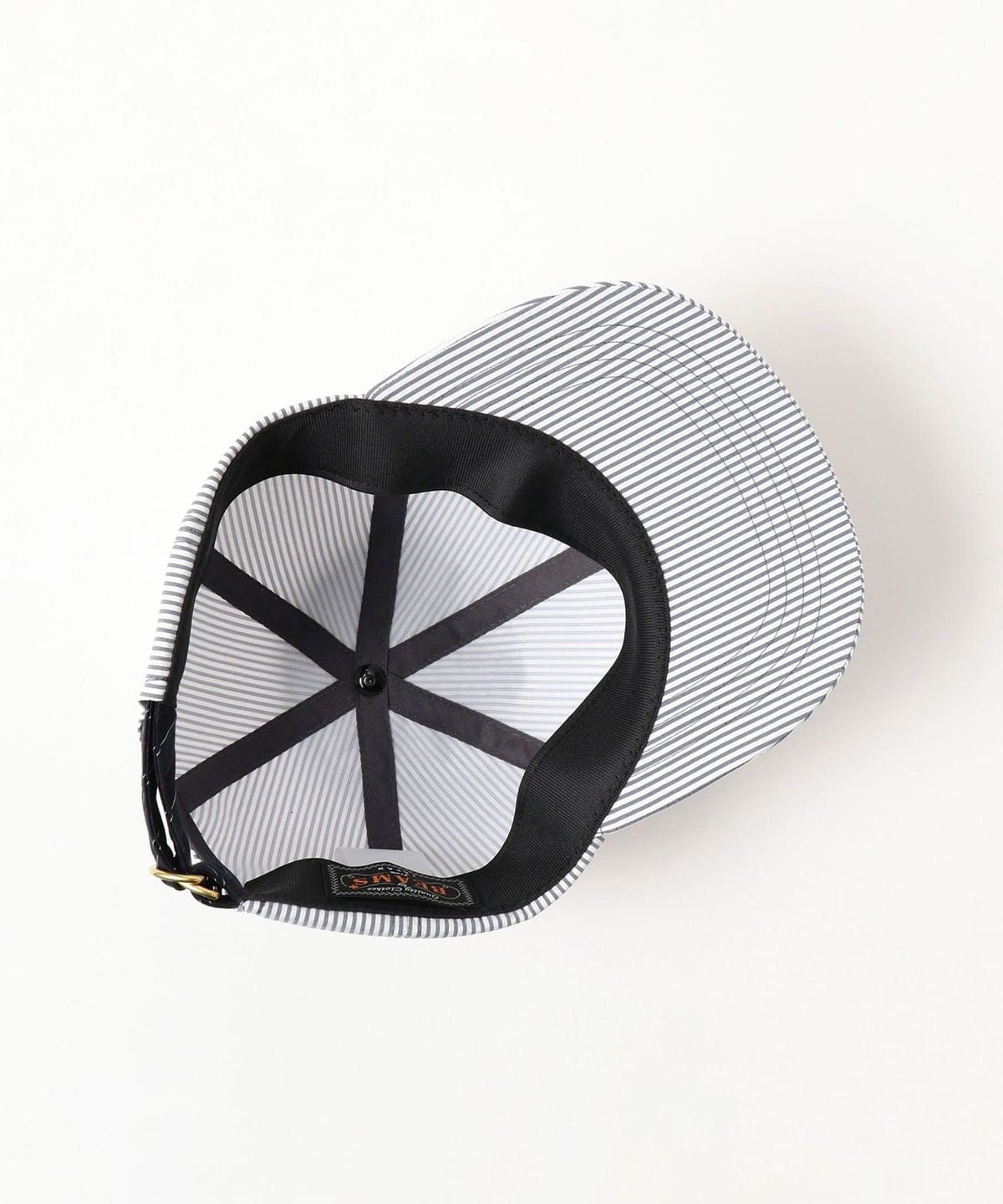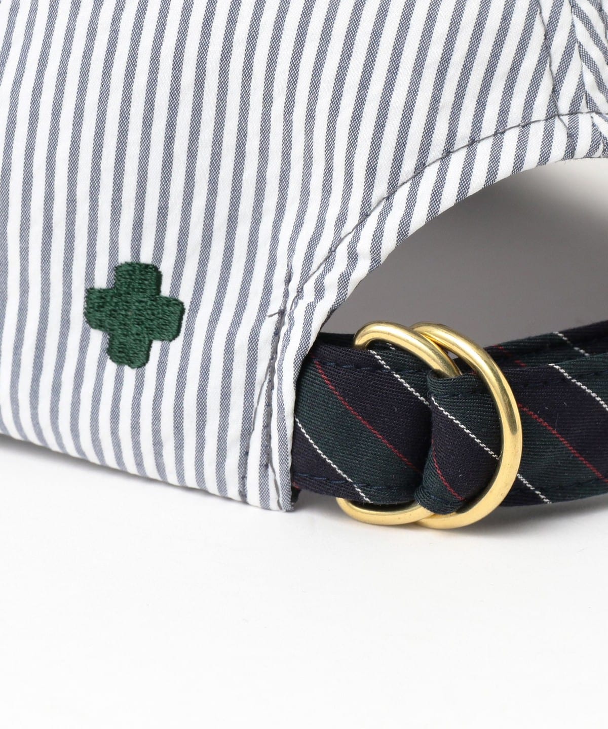 A basic 6-panel cap made of cool sheer soccer material. The "+" mark embroidery of <BEAMS PLUS> on the back and the belt with a regimental stripe pattern are the casual points.