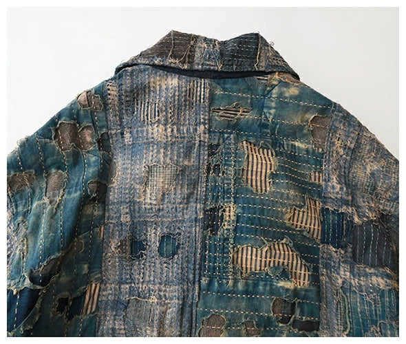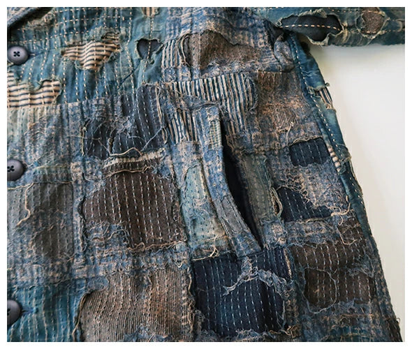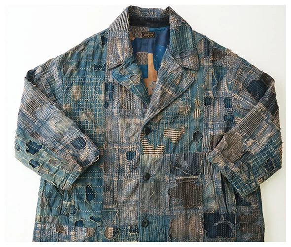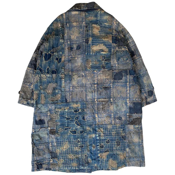 Conquer the cold in style with the Kapital BORO CAVALIER Coat. This long, one-of-a-kind coat is the ultimate Boro jacket, making it the one boro piece to rule them all. Don't just blend in with the crowd, stand out and make a statement with this unique piece.