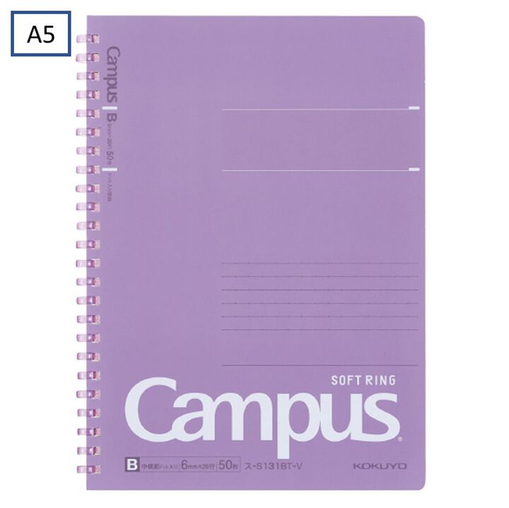 Kokuyo Campus Soft Ring Notebook | A5 - 50 Sheets - 6mm Dotted Line | Purple