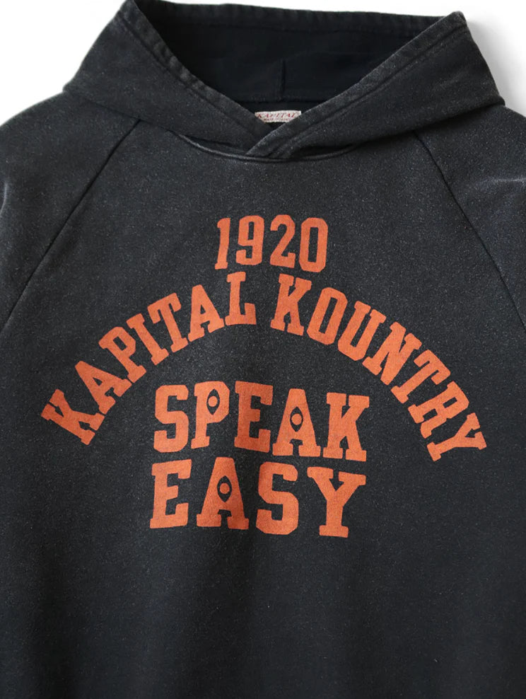 Kapital SWT Knit Raglan Hoodie (SPEAKEASY College) - Black