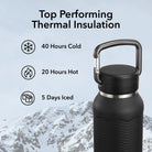 - Top insulation times: 40 hrs cold · 20 hrs hot · 5 days ice