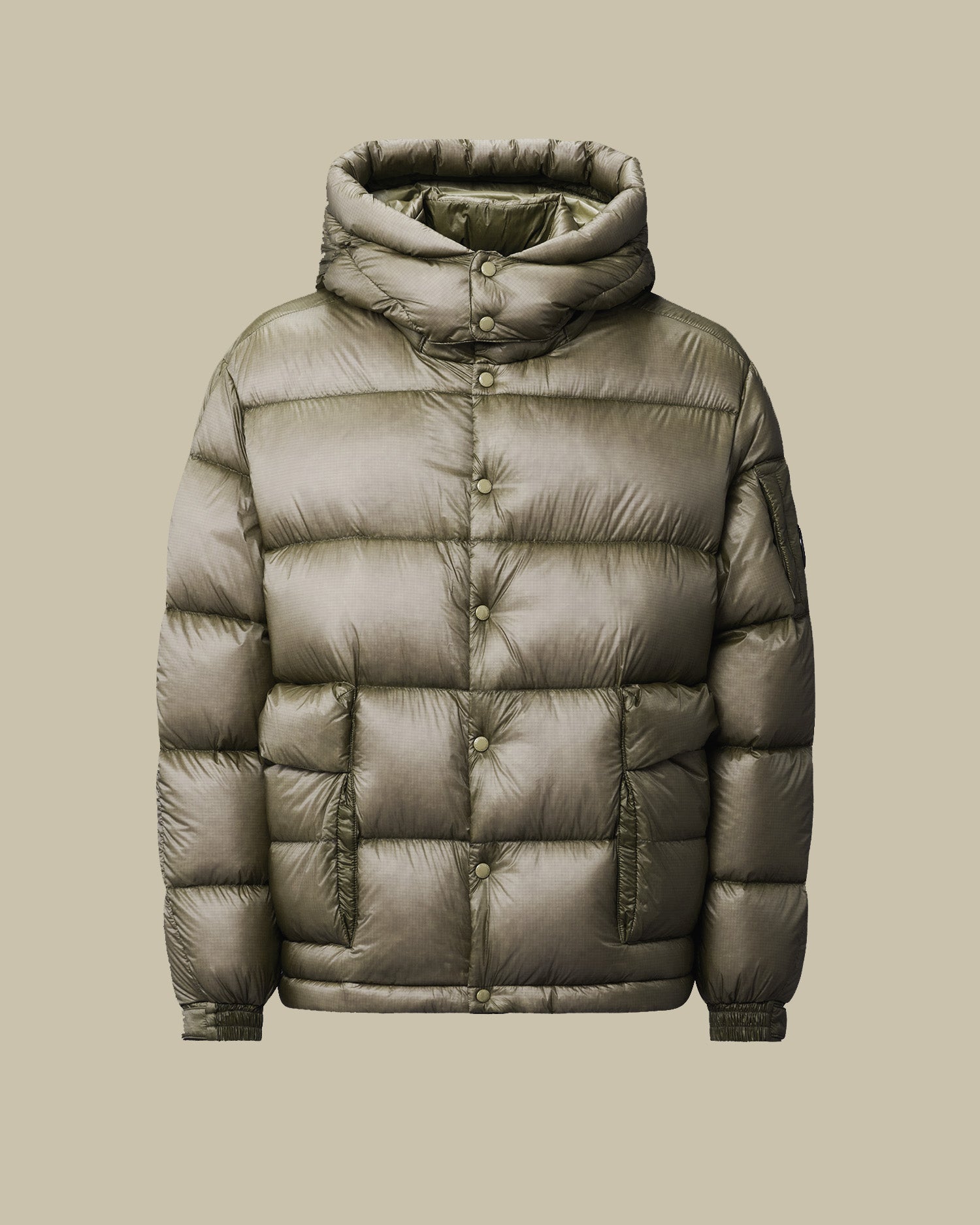 Down jacket crafted in D.D. Shell, a micro-ripstop opaque 7-denier nylon. The lightness and transparency of the fabric emphasize the structure of the garment, while the Direct Down Injection process ensures optimal insulation. The jacket features a detachable and adjustable hood with snap face guard, a hidden two-way full zip fastening with flap snap closure, and side flap pockets. Finished with C.P. Company’s iconic Lens, contrast seams, adjustable velcro elasticated cuffs, and an adjustable drawstring hem. Regular fit.