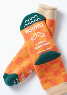 These slipper socks are characterized by the bold and fun checkerboard pattern. Each pair is made of wool/acrylic blend yarn and features brushed soles for excellent cushioning and heat-retaining properties. The rubber print on the sole helps prevent slipping.