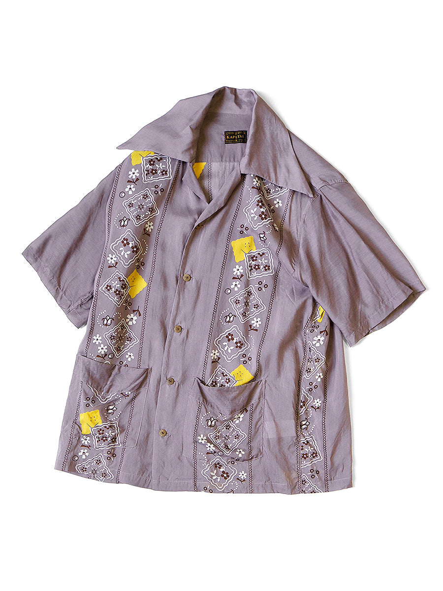 Kapital Silk Rayon PECKISH RAINBOWY WRANGLE Collar Cuba Shirt -Purple