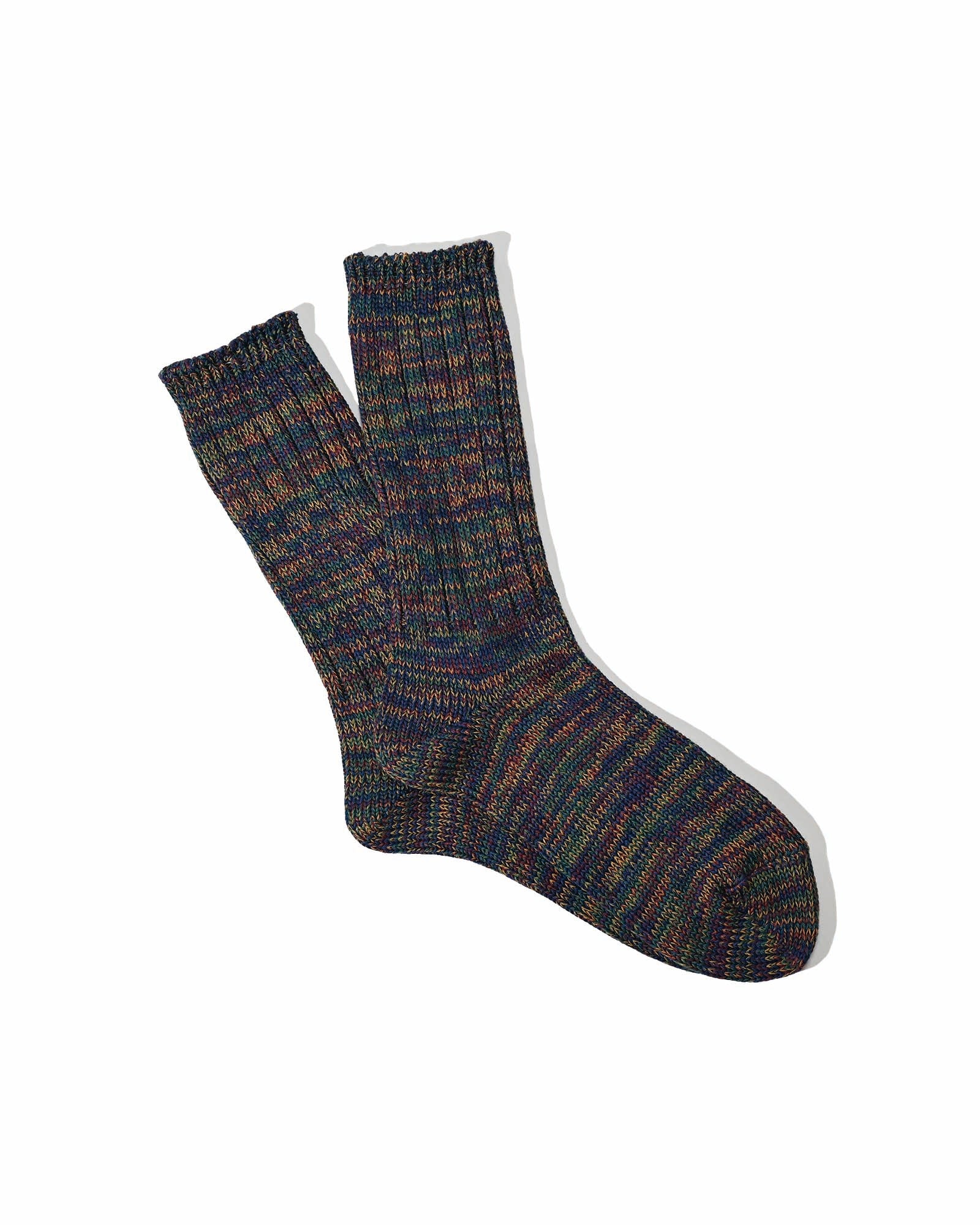 Crafted with premium slub yarn and a mix of textures, these socks perfectly balance depth of color and softness for a truly luxurious experience. Made in Japan with a ribbed knit construction, these socks feature a composition of 94% cotton, 5% polyester, and 1% spandex.
