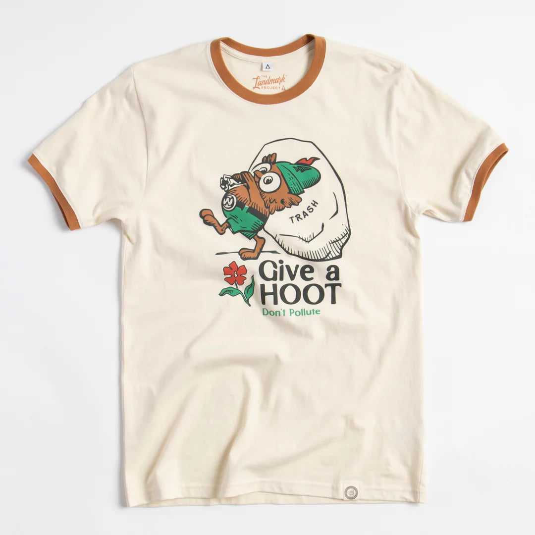 The Landmark Project Give A Hoot, Don't Pollute Unisex Short Sleeve Ringer Tee (Honeycomb/Canyon)