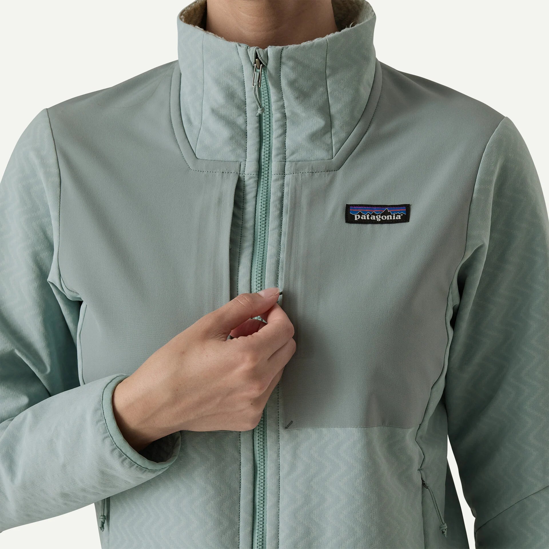 Soft kissing-welt zipper garage at the chin offers next-to-skin comfort