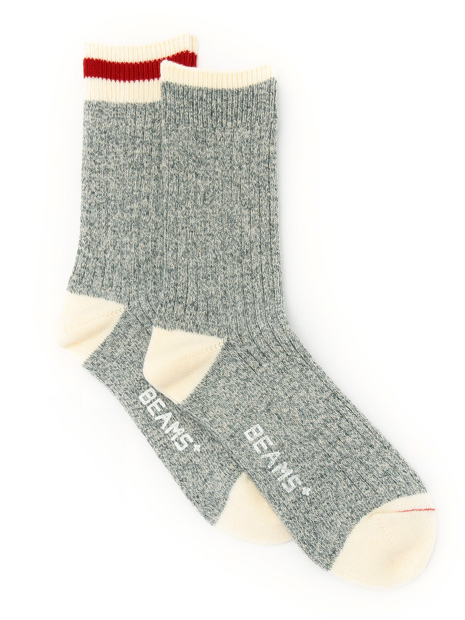 Beams Plus 2-pack Rag Socks - Grey (Line: Red)