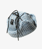 The bomber cap offers exceptional thermal insulation, making it a timeless favorite for autumn and winter. Crafted from warm-looking knitted fabric, it elevates your style with refined comfort. The ear flaps secure neatly atop the head with a leather cord for versatility. This season introduces a distinctive three-color design created from stage-dyed yarn, adding a sophisticated touch to this classic piece.